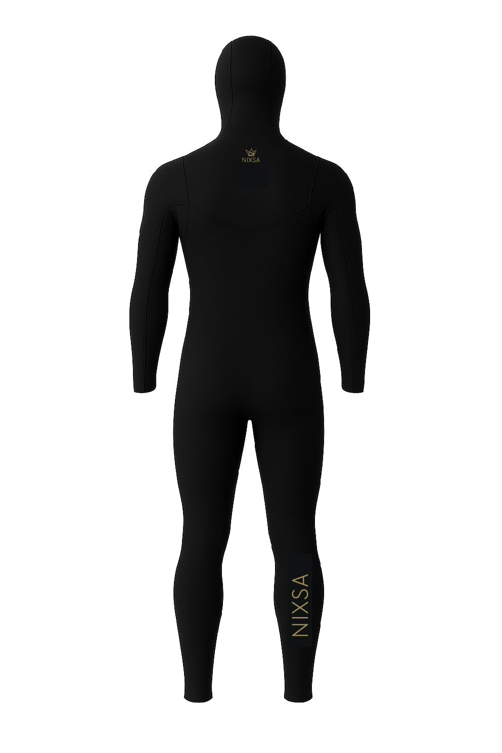 For the coldest swells and harshest winter days, the Nixsa Men’s 5/3mm Full Length Chest Zip Wetsuit with Built-in Hood offers ultimate warmth and protection. Constructed from ultra-premium Yamamoto neoprene, it delivers superior heat retention, water resistance, and exceptional flexibility, even in icy conditions. The 5/3mm panel combination ensures critical warmth in the torso while maintaining mobility in arms and legs. The integrated hood reduces heat loss through the head while keeping icy water out, so you can push through frigid sessions with confidence. Sealed seams add an extra barrier against flushing, while the ergonomic chest zip system allows easy on-off without compromising fit or seal. Matt black styling with gold Nixsa logos completes a professional, high-performance look. Designed for committed cold-water wave riders, this wetsuit keeps you warm, light, and ready to ride when most would call it a day.