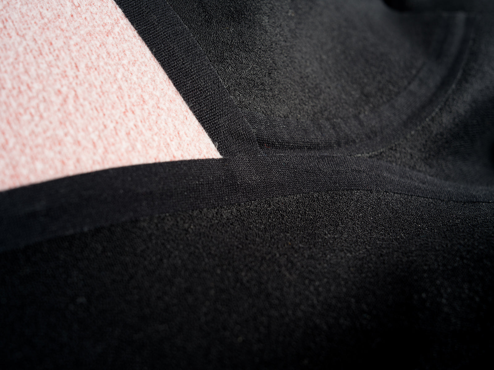 The printing at the collarbone and cuffs provides an added barrier to reduce flushing, for a closer and warmer fit.