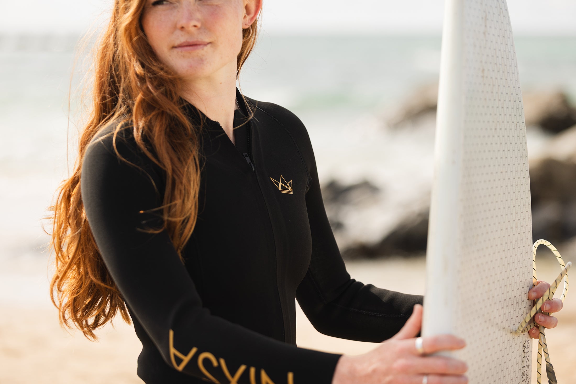 The Nixsa Women’s 2/2mm Spring Wetsuit combines sleek style with high-performance functionality for warm-water surfing and paddle sessions. Designed in a swimsuit style with long sleeves and no legs, it offers maximum freedom of movement for your lower body while protecting your upper body from sun, wind, and board rash. Made from premium Yamamoto neoprene, it delivers incredible flexibility, lightweight comfort, and superior durability. The front chest zip entry allows for easy on-off and a secure fit, while sealed seams enhance comfort and minimise water entry. With its flattering, tailored fit, this wetsuit not only performs but looks stunning in the water. Finished in classic black with bold gold Nixsa logos, it’s built for female surfers who want a stylish, high-performance spring suit that can handle the demands of active warm-water sessions without compromising on comfort or mobility.